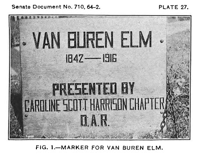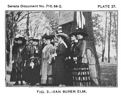 A few days later Teamster Mason Wright was awarded a $5 silk hat, although it was never explicitly stated it was for his skill in staging a stage crash - call it political slapstick. But the tree who's root had provided the fulcrum for the prank would forever more be known as the Van Buren Elm. In 1916 (above) the Daughters of the American Revolution even gave the tree a wooden plaque of its own.