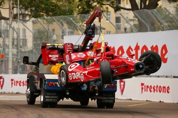 The collision between Rutherford's car and the other cars, intensified the explosion. A flaming tire came over the catch fence, barely missing track workers.