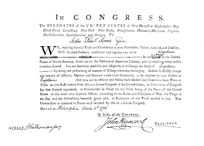 Having made the voyage to collect his inheritance, John Paul decided to stay in Virginia. And to confuse any hounding lawyers Jones added a third name to his moniker. And when, luckily, the shooting started in Boston, Captain John Paul Jones packed up his resume and offered to fight for his new country as a privateer.