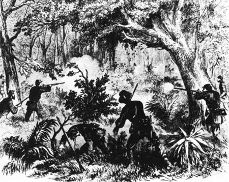 and had immediately sent men by steamship up the creek. At the same time he forced marched most of his command toward the