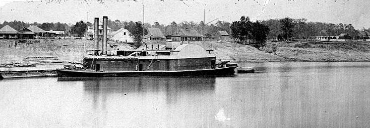 the rebel shore. Just as the bow wave from the first ironclad struck
