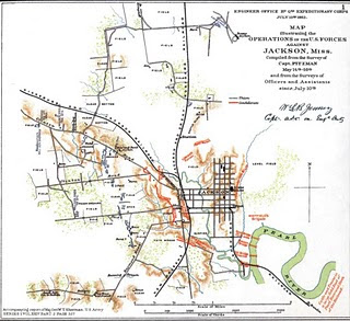 This morning General Grant orders General McClernand to pull back to a line to the east of Raymond, Mississippi, and hold there to protect the rear of his operations against Jackson. Having thus neutralized any threat from the political McClernand (for 24 hours at least) Grant now feels free to join Sherman’s Corp, as it follows McPherson's Corps toward Jackson. At Clinton, McPherson's men will cross the Vicksburg and Jackson railroad line, and they will pause there long enough to destroy a couple of miles of track and cut the telegraph line to Vicksburg. The jugular of the "Gilbraltor of the South" has been severed.