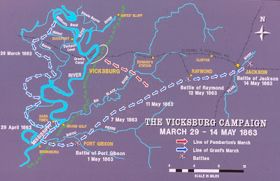 By courier set back to Grand Gulf Grant notifies Washington of his intention to attack the state capital of Jackson, Mississippi on the 14th. The pace of events around Vicksburg are suddenly picking up.