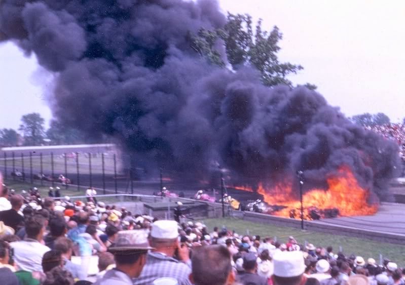 According to the Indianapolis News, “Harry Knight (above- the number 7 car)...to avoid striking the prostrate (mechanic) skidded sideways at great speed” Knight slammed broadside into two cars being serviced at the end of pit row - which had no barrier separating it from the track. . “That several people were not killed was a mystery to the great crowd in the grand stands” said the News.