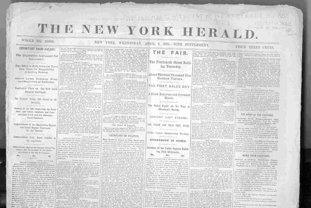 The Journal of Commerce was a small anti-slavery newspaper founded by Arthur Tappan and Samuel Morse, inventor of the telegraph. But the owners opposed the Lincoln administration's decision to use force to put down the rebellion. So the Postmaster General had refused to deliver the JOC via the mail, crippling the paper outside New York City, where most of its 35,000 readers lived. William Prime, business manager of the JOC, wrote to his wife that afternoon, “Found on coming down town that we, in common with the World...had been hoaxed by a most ingenious scoundrel.” That evening Federal soldiers arrived to close down the paper and arrest the guiltless Mr. Prime.