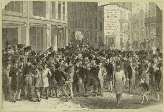 The reaction to news of a new half million man draft, in the city which the year before had produced three days of rioting (above) in response to Lincoln's first draft call was expected to be even more violence. One hundred twenty had died in the summer of 1863, at least eleven African-Americans had been lynched, untold numbers beaten, and fifty large buildings had been burned down. Many on Wall Street took this as a sign the Federal government was losing the war, and they expected investors to dump their stocks for gold.