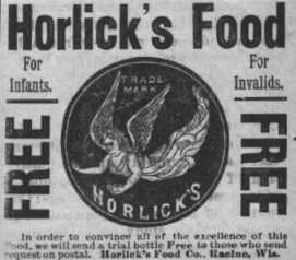 So, in 1877 the Horlick brothers opened their single story factory in Racine, making "Horlick's Infant and Invalids Food" and got ready to greet success. Okay, it was a little slow in coming. Oh, the baby formula business was doing okay, but it was by now a very competitive market and not the rocket to success that James had dreamed of along the banks of the River Wye, back in England. Still, in 1883, James’ preeminence in the field of baby food had been confirmed with a new patent, thus effectively limiting their competition in America.