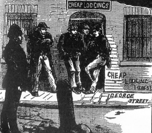 On Thomas Street, to the east of the Workhouse, the ill working poor lined up to be diagnosed at the Casual Dispensary (above) - men in mornings, women in the afternoons, separated to maintain Christian propriety.