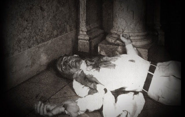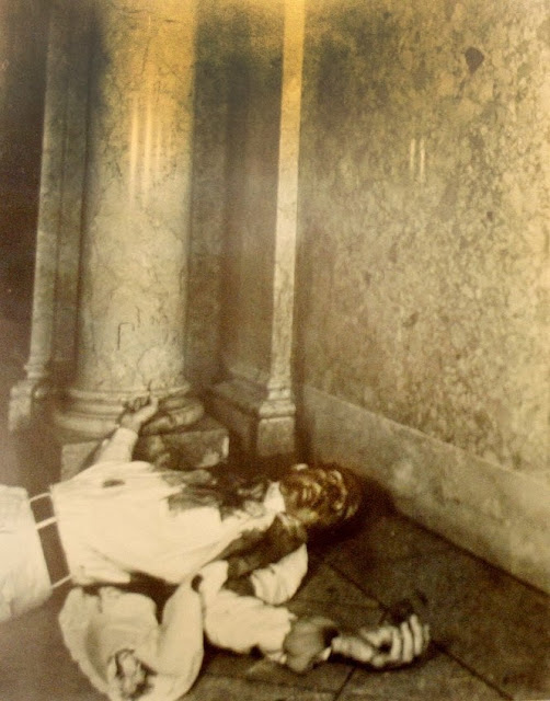 But it was Siqueiros, the most famous painter and biggest ego of the trio, who at the end burst through the french doors and emptied his pistol directly into Trotsky's bed. Then Pujol set off a grenade in the study, intending on destroying Trotsky's biography of Stalin. But it was Arenal who drew the only actual blood, a ricochet from the bedroom wall, which struck 14 year old Seva in the toe.