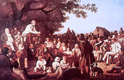 In handbills and letters to Ohio newspapers Major Stickney inflated the posse to 300 men “armed with muskets and bayonetts". He claimed that the deputies had tried to gouge out his eyes (he wasn't there) and had “throttled” his daughter. He urged his fellow buckeyes to “turn out en masse to protect their northern border and restrain the savage barbarity of the hordes of the north.” Ohio Governor Robert Lucas, another Jackson Democrat, sent 40 men to guard his surveyors and ordered the 100,000 members of the state militia to assemble in the tiny town of Perryville, Ohio, just up the Maumee River from Toledo. Only 10,000 actually responded and most of them never got to Perryville, because they got lost in the swamp.