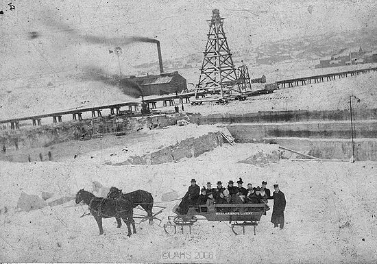 “…B.A. Eckhart was the first to reach the narrow watershed at Kedzie Avenue and Thirty-filth Street...a dredge was already hard at work throwing up the clay from the cut…. Less than eight feet (of ice and frozen clay) separated the waters of the lakes from the waters of the Mississippi…It was exceedingly slow work, for the clay was (frozen) like a rock…Four large charges of dynamite were placed in the ridge…A few fugitive pieces of clay did fly into the air. But as a grand opening it was a failure…."