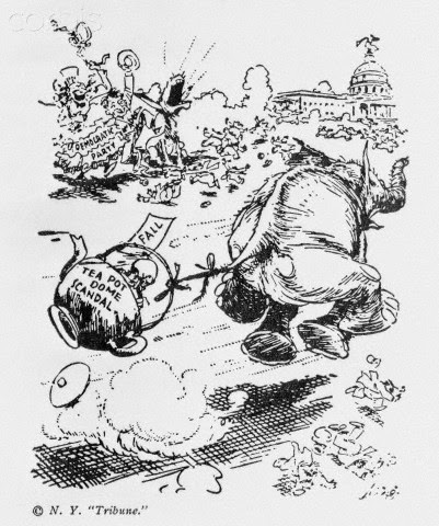 After having fought statehood for years as a Democrat, in 1912  when statehood came, newly minted Republican Albert Fall became one of New Mexico's first elected U.S. Senators.  In Washington, D.C.,  Albert became famous for two things - his alcohol fueled poker parties with Ohio Senator Warren G. Harding, and his unrelenting animosity toward Democratic President Woodrow Wilson. When Wilson suffered a stroke in 1919, Albert alleged he had been rendered mentally incompetent. At their October examination, Senator Fall hypocritically assured the bedridden Wilson, “I have been praying for you, Sir.” Looking up at his torturer, Wilson inquired, “Which way, Senator?” Albert joined in the laughter, but in November of 1920 it was Senator Fall's drinking buddy, Republican Warren G. Harding who was elected President over Wilson.