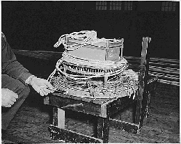 Rolling with the swell was a large section of white cloth. The captain reefed his sails and hove to. As the sailors pulled the cloth on board they became aware that suspended beneath the fabric was a large metal ring resembling a bicycle wheel, upon which was mounted electronic equipment, all marked in Japanese.