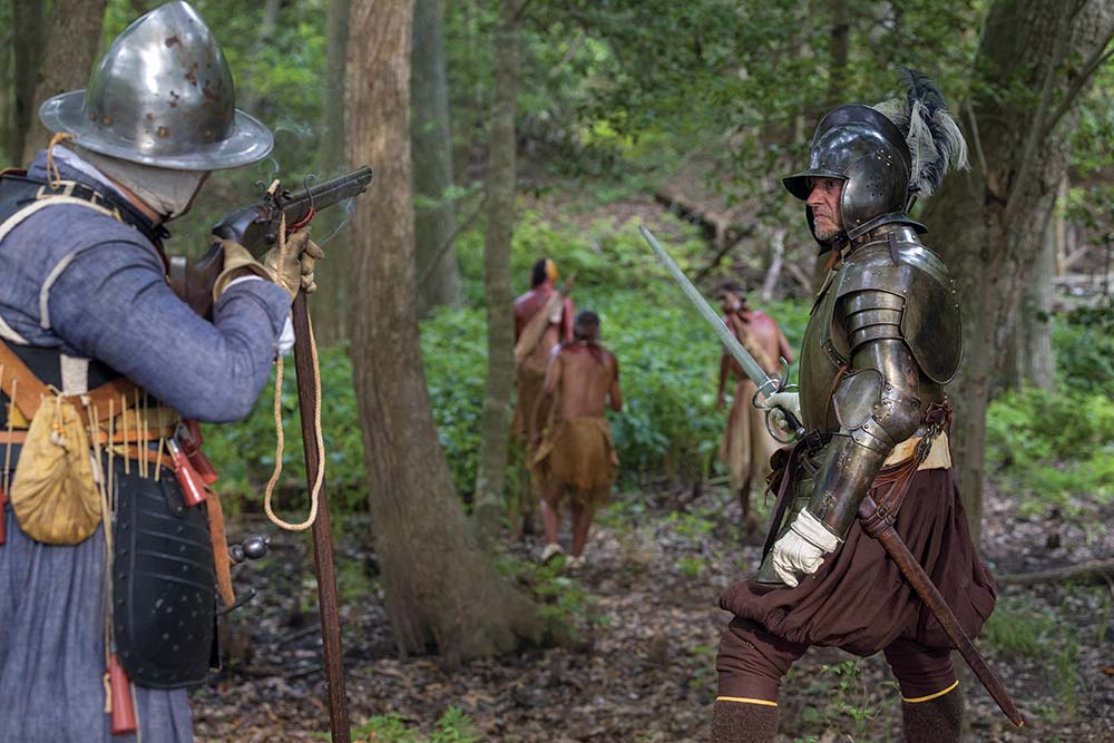Nathaniel Bacon (above), with no actor to play against, went over the top. He started screaming. He ordered his men to surround the meeting house, and announced he would kill everyone inside if he were not given total command at once. For a few minutes it looked as if there would be a wholesale slaughter just for the sake of a theatrical effect. But a touch of reality was supplied by the supporting players. Reason eventually prevailed. Will was persuaded to sign his nephew’s commission.